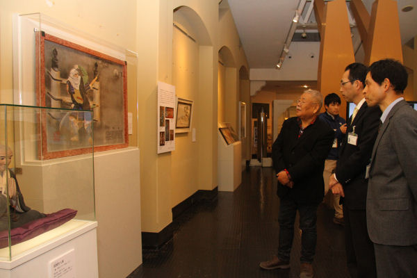 - 桐塑(とうそ)人形作家で人間国宝の林駒夫さんが来町しました。林さんは、江奈の福本洋子さんの所有する「孝義録」をご覧になった後、伊豆の長八美術館で開催中の特別展にて、長八作品を鑑賞されました。