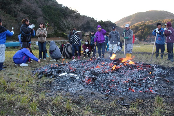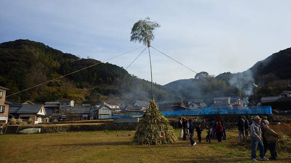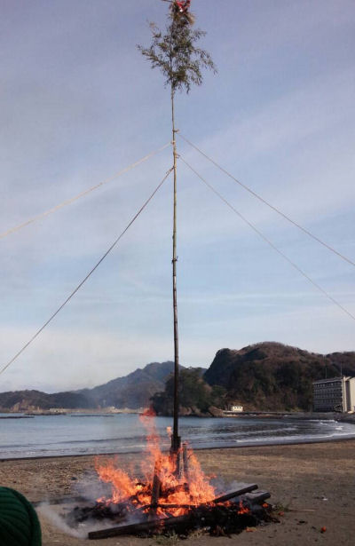 - 昨日の話題ですが、松崎海岸において、五穀豊穣や無病息災を願い、どんど焼きが行われました。