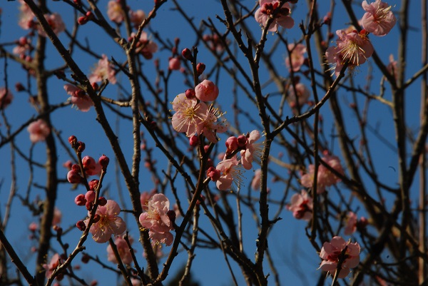 - 牛原山では、梅の花が咲き、青空に映えていました。
