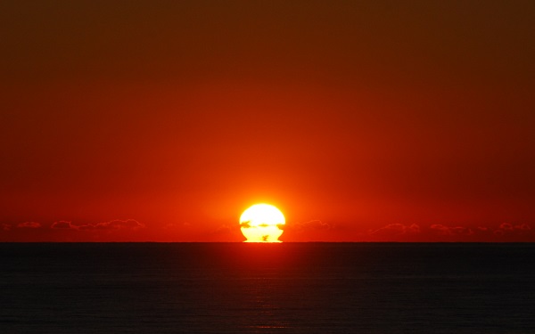 - 本日は天気の良い1日となり、外部からはだるま夕日を見ることができました。だるま夕日は蜃気楼現象の一種で、なかなか見ることができない貴重な夕日です。