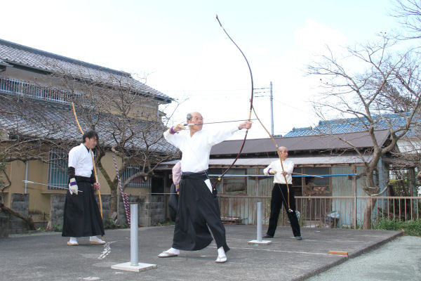 - 江奈地区の舟寄神社において、新春恒例の弓まつりが行われました。今日はあいにくの強風の天候となりましたが、神事終了後には射会が行われました。
